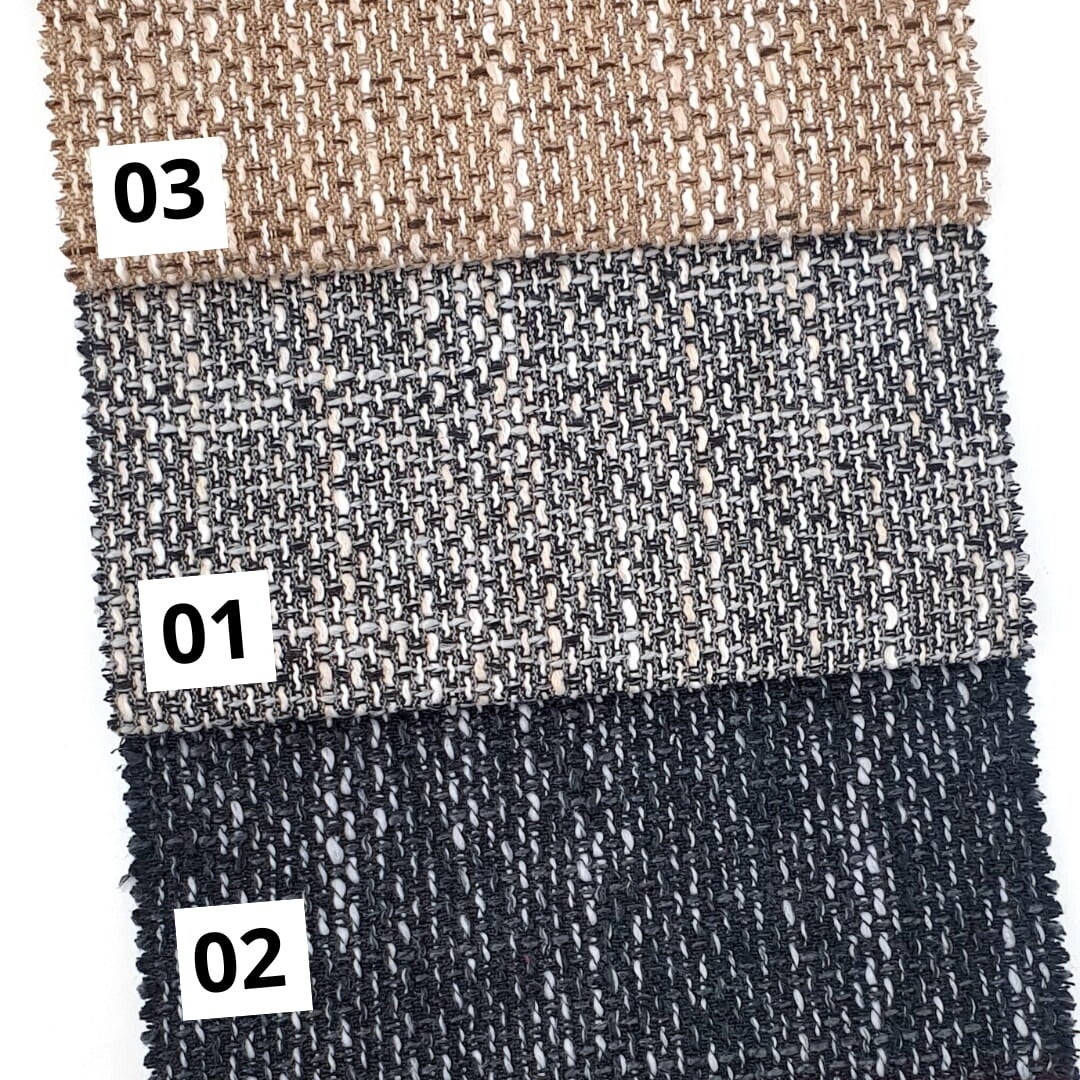 - Struktura i mięsistość: Dzięki gramaturze ok. 430 g/m² oraz grubemu, filcowemu podkładowi, tkanina jest grubsza, stabilna i ładnie układa się na bryłach mebli.